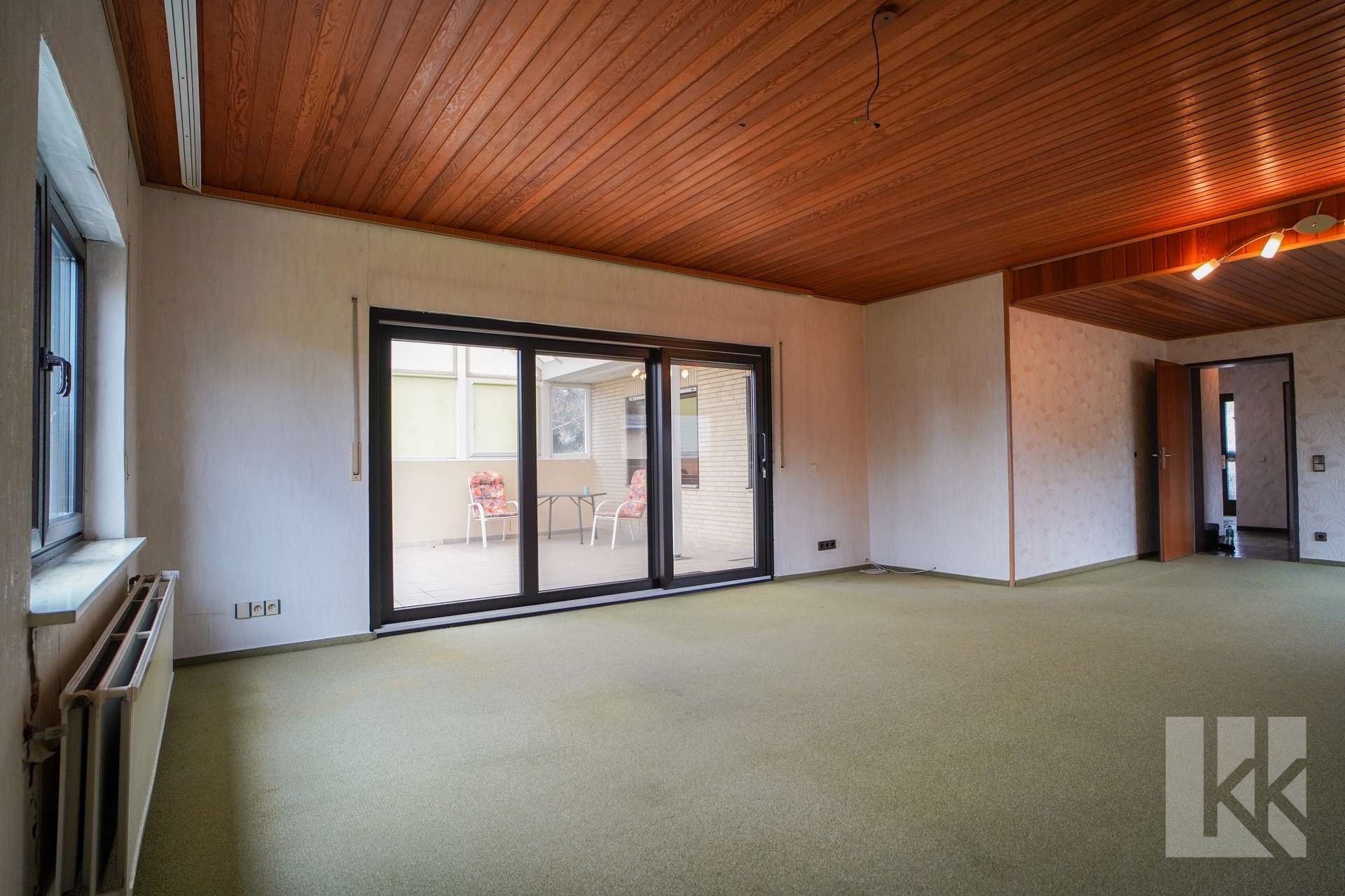 Wohnen und Essen bilden eine offene Einheit mit großen Fensterflächen und einem schönen Blick in den Garten. Direkt angrenzend befindet sich die Terrasse – ein echtes Highlight der Immobilie. Sie wurde im Jahr 2000 errichtet, ist vollständig überdacht und an drei Seiten geschlossen. Dadurch entsteht ein geschützter Bereich, der sich fast wie ein Wintergarten nutzen lässt und über weite Teile des Jahres hinweg zusätzlichen Wohnraum im Freien bietet.
