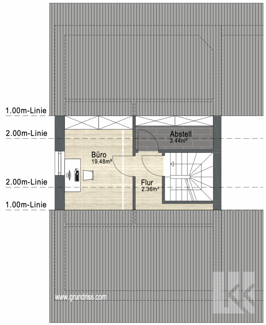 Praktisch ergänzt wird das Erdgeschoss durch einen Hauswirtschaftsraum, der zusätzlichen Stauraum bietet und Platz für Waschmaschine, Trockner und vieles mehr bereithält.