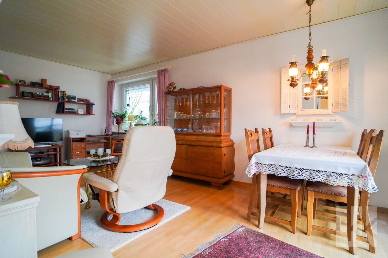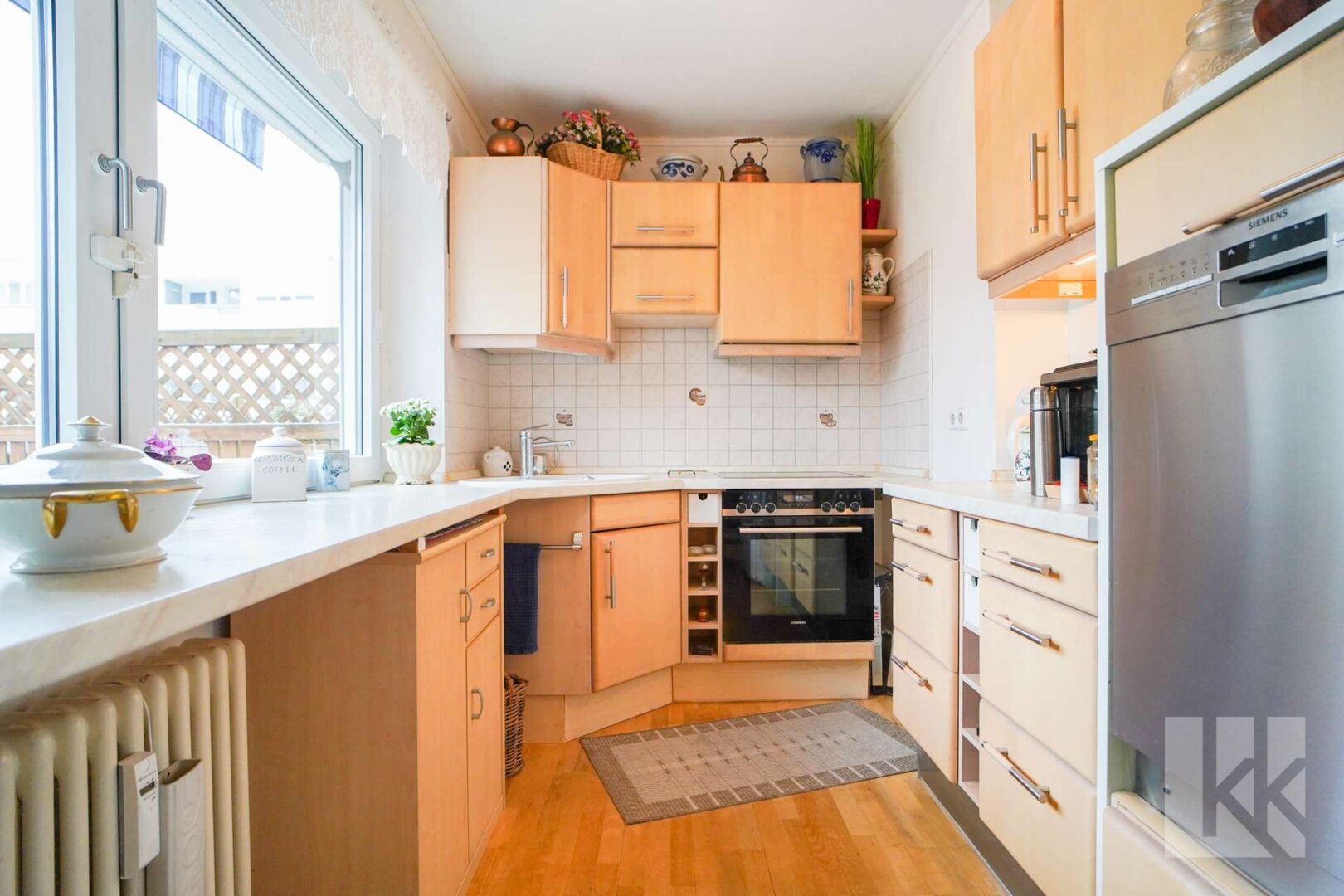 Der Wohn- und Essbereich bildet das Herzstück der Wohnung. Große Fensterflächen lassen viel Tageslicht herein und schaffen eine direkte Verbindung zur Terrasse. Die offene Küche ist funktional ausgestattet und gut in den Wohnbereich integriert. Die klare Raumstruktur ermöglicht eine flexible Möblierung und sorgt für ein offenes Wohngefühl mit gemütlichem Charakter.