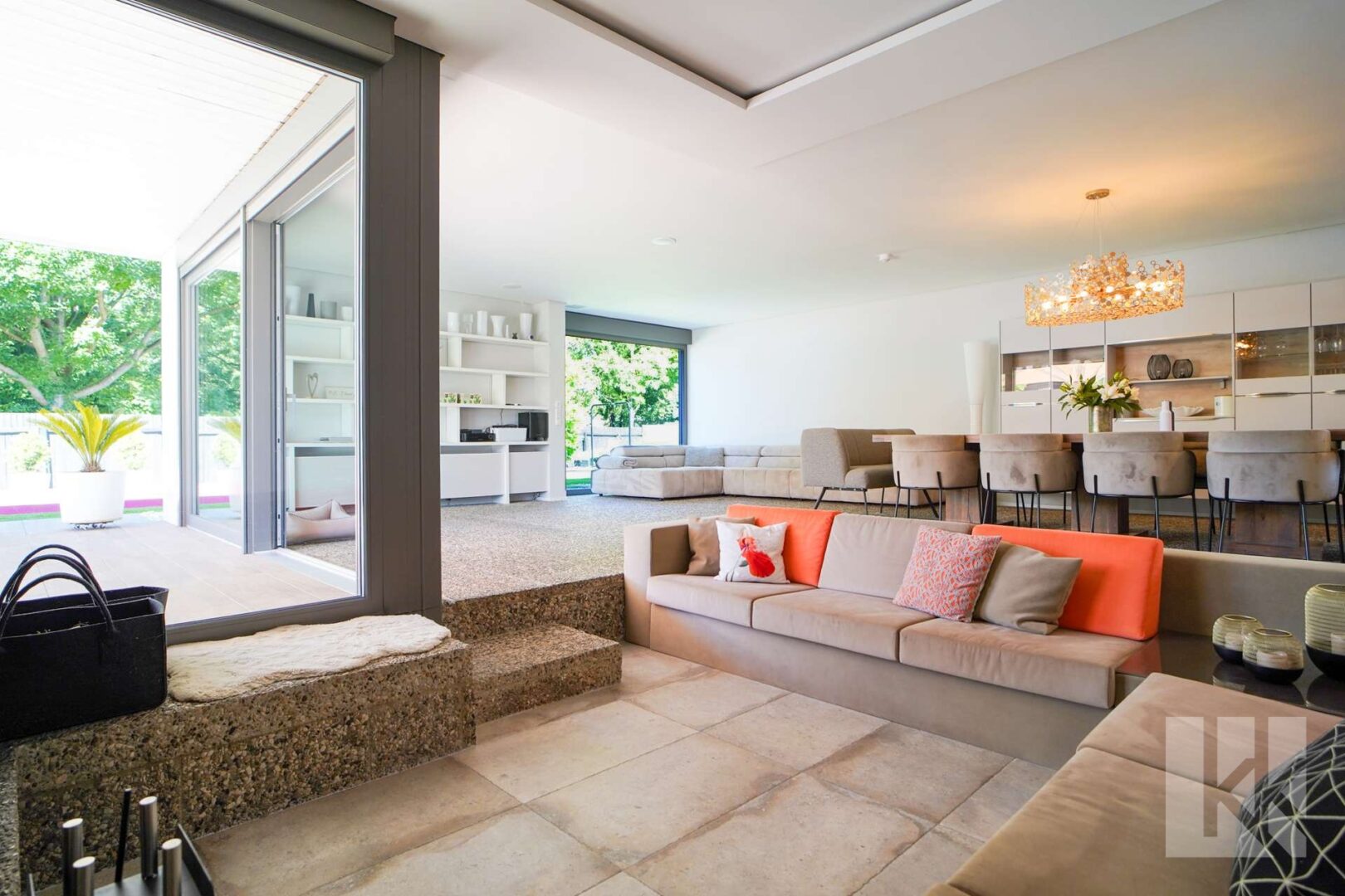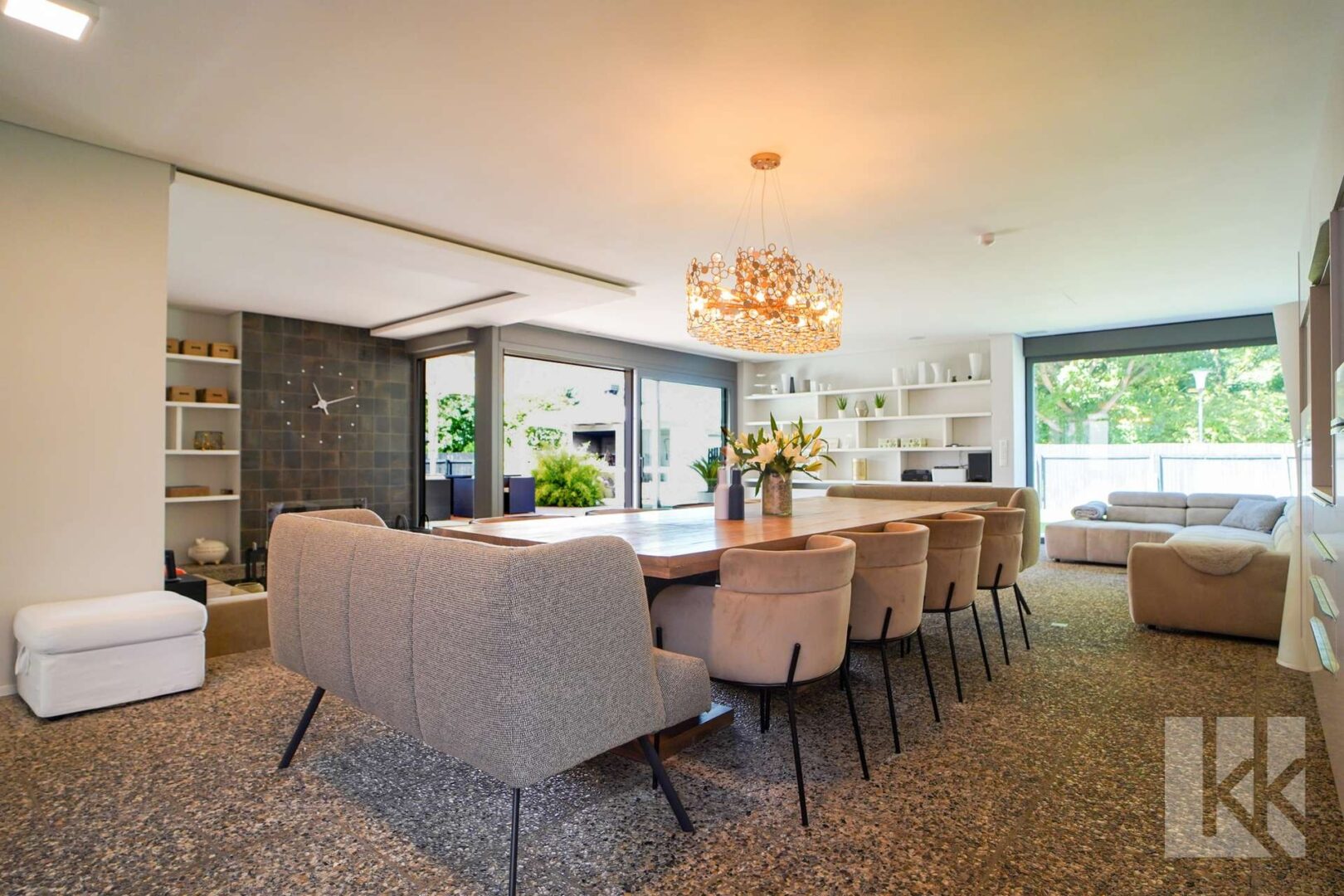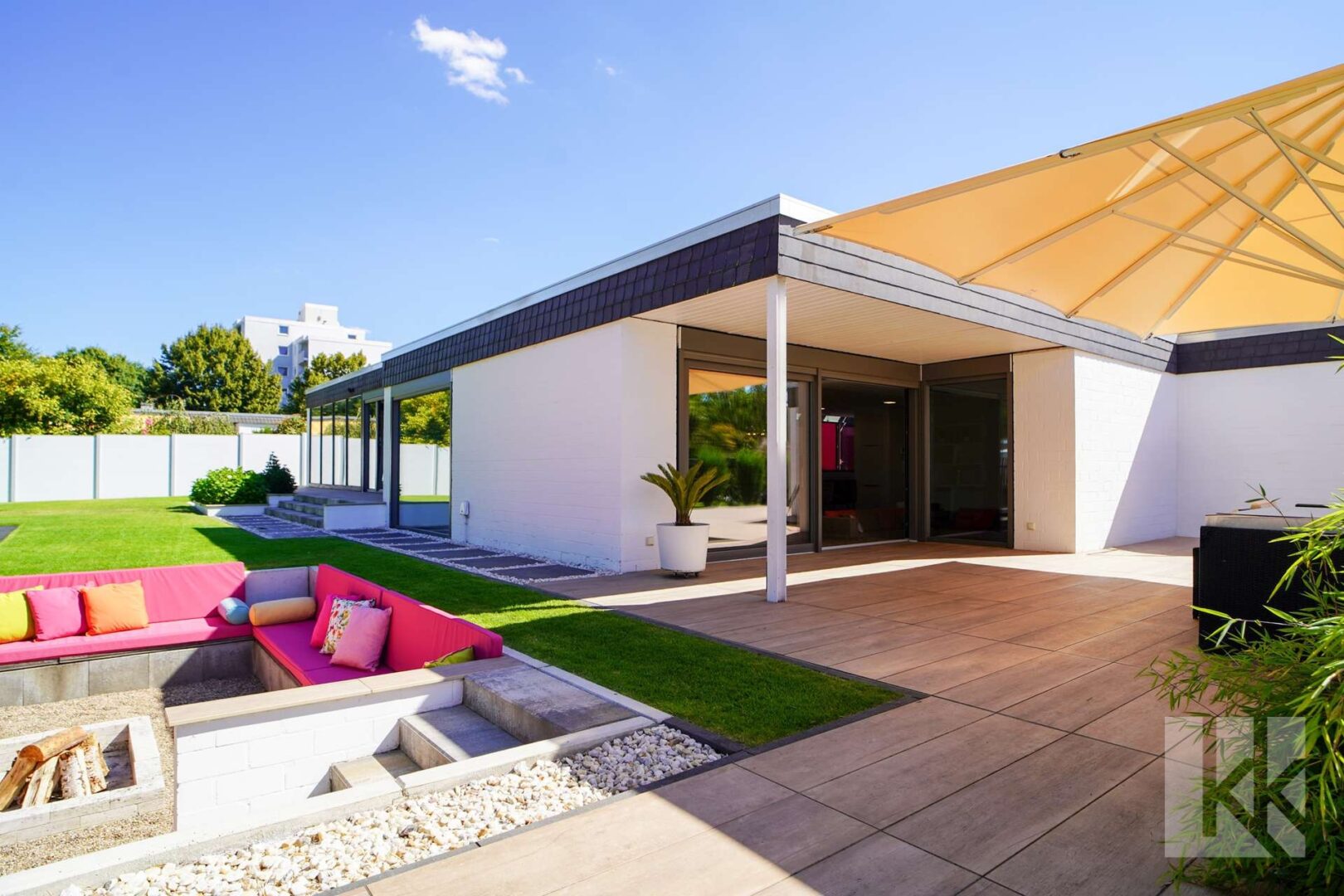 Auch der Außenbereich wurde mit derselben Leidenschaft gestaltet: Großzügige Terrassen, eine stilvolle Outdoorküche, eine gemütliche Sitzgrube und eine architektonisch angelegte Gartenlandschaft schaffen eine private Oase mitten in der Stadt. Für Genussmomente im Inneren stehen zwei exklusive Heimkinos zur Verfügung – Orte für Unterhaltung, Rückzug und besondere Abende.