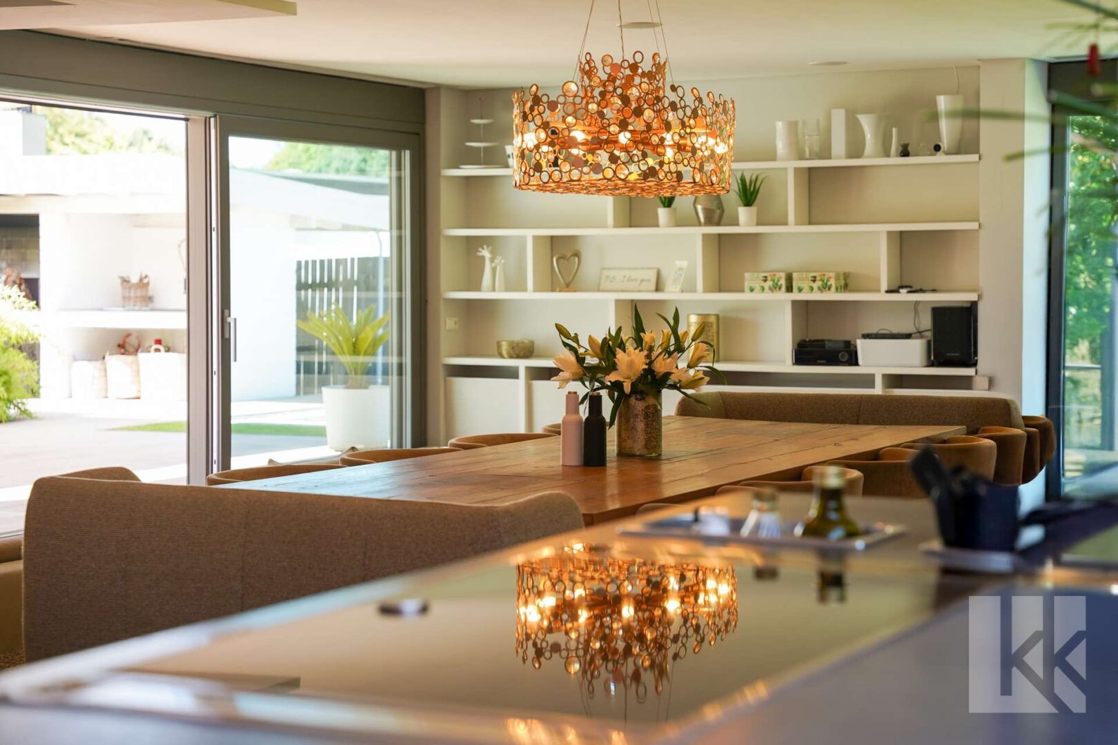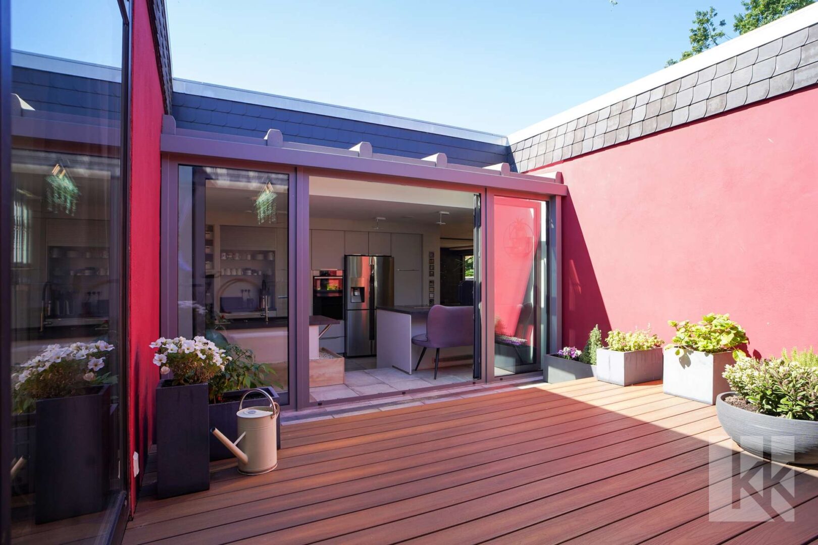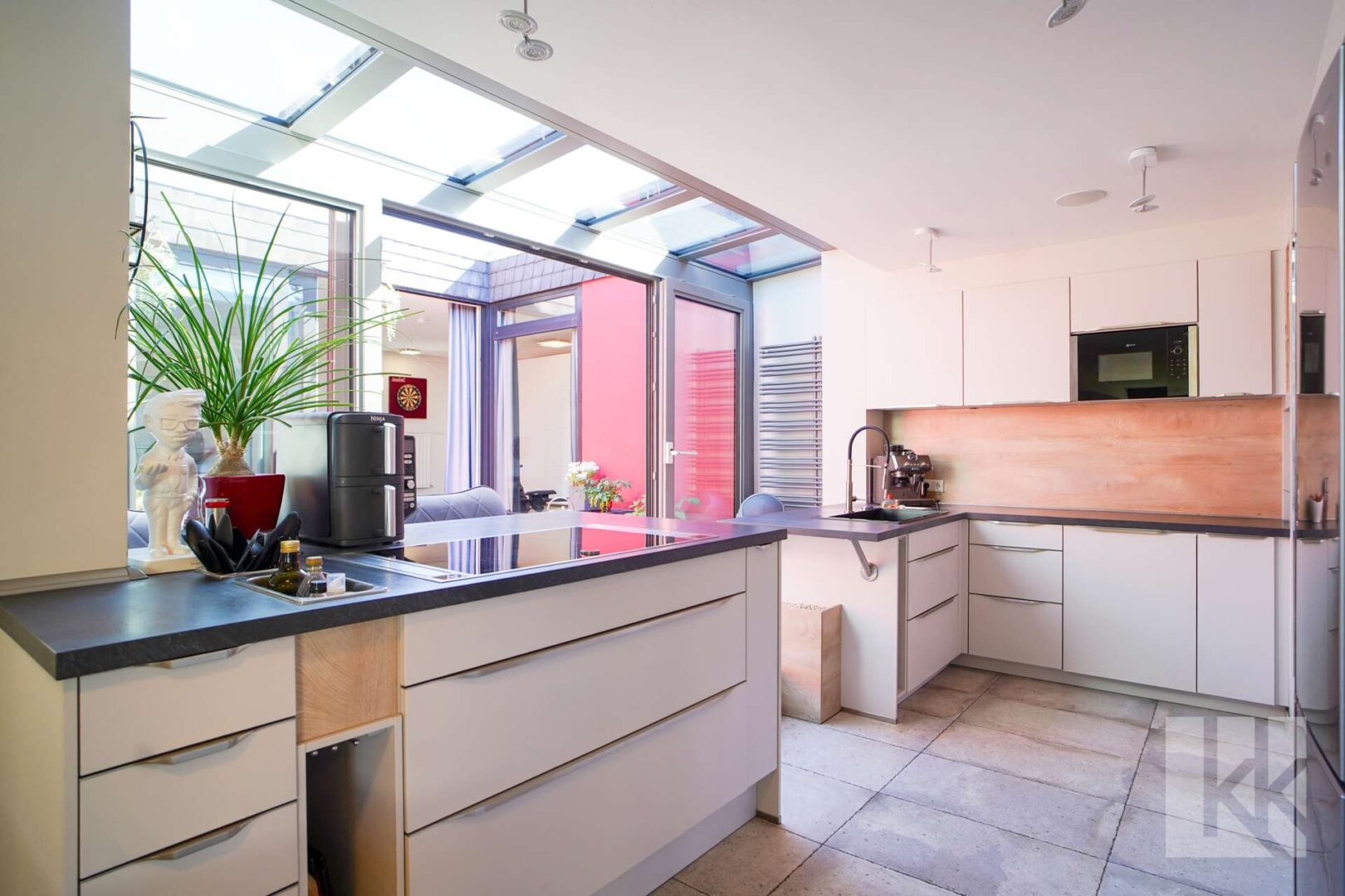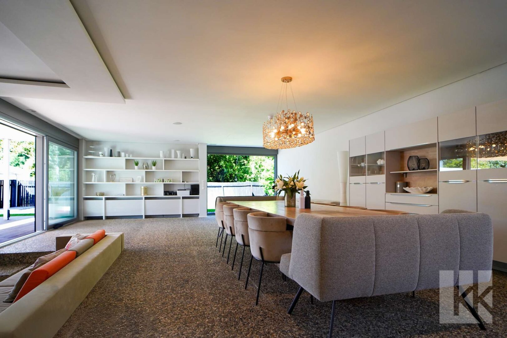 Auch der Außenbereich wurde mit derselben Leidenschaft gestaltet: Großzügige Terrassen, eine stilvolle Outdoorküche, eine gemütliche Sitzgrube und eine architektonisch angelegte Gartenlandschaft schaffen eine private Oase mitten in der Stadt. Für Genussmomente im Inneren stehen zwei exklusive Heimkinos zur Verfügung – Orte für Unterhaltung, Rückzug und besondere Abende.