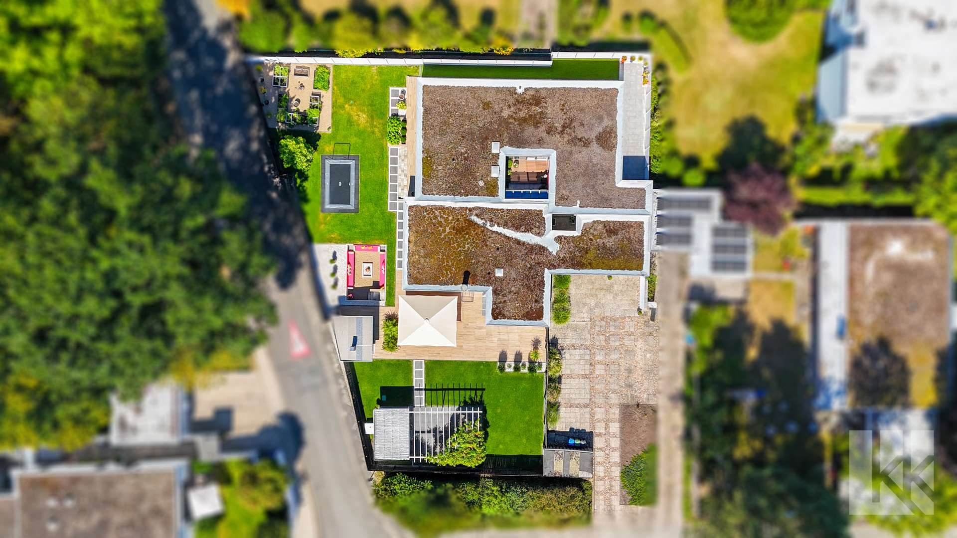 Auf mehr als 400 m² entfaltet sich ein Wohnkonzept, das Klarheit, Großzügigkeit und Eleganz vereint. Sechs Schlafzimmer, zwei weitläufige Wohnbereiche, drei Bäder und ein Gäste-WC bieten reichlich Platz für Familie, Gäste und Individualität. Herzstück des Hauses ist das zentrale Atrium – ein architektonisches Highlight, das mit seinen offenen Blickachsen und dem fließenden Übergang zwischen Innen- und Außenbereich für eine Atmosphäre sorgt, die ihresgleichen sucht.