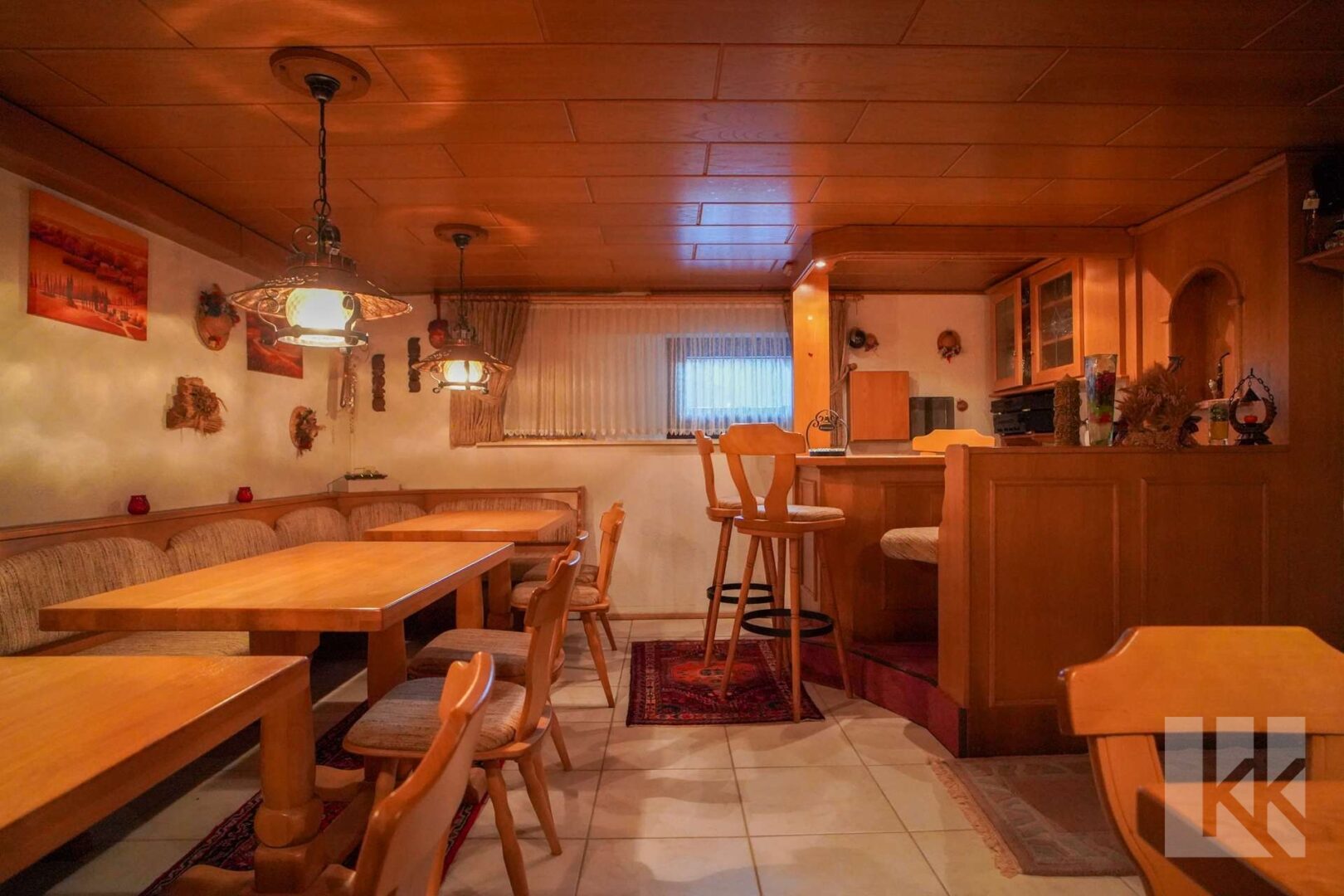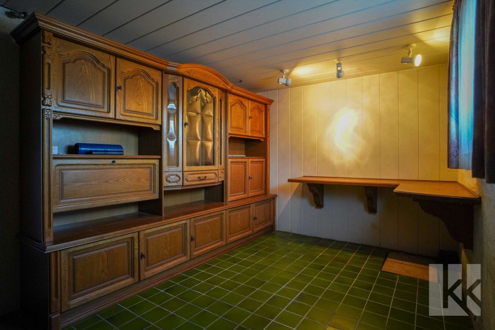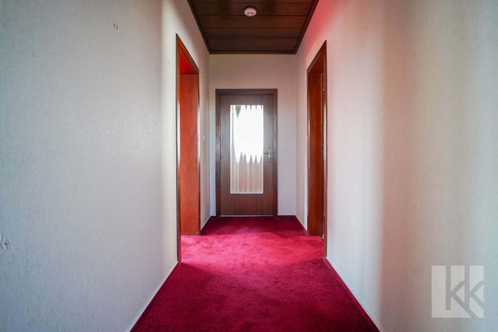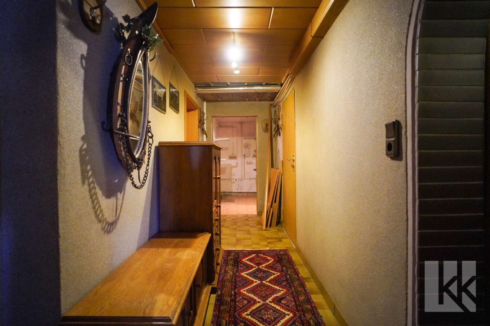 Die Einliegerwohnung verfügt über einen separaten Eingang und bietet eine klassische Raumstruktur. Vom Flur aus erschließen sich alle Bereiche: das Wohnzimmer mit Zugang zur Terrasse und in den Garten, die Küche, ein Badezimmer sowie mehrere Zimmer, die sich flexibel nutzen lassen. Der Stil der 1970er Jahre ist hier noch erkennbar – entsprechend besteht Renovierungsbedarf, bietet aber gleichzeitig die Möglichkeit, die Räume nach eigenen Vorstellungen neu zu gestalten.