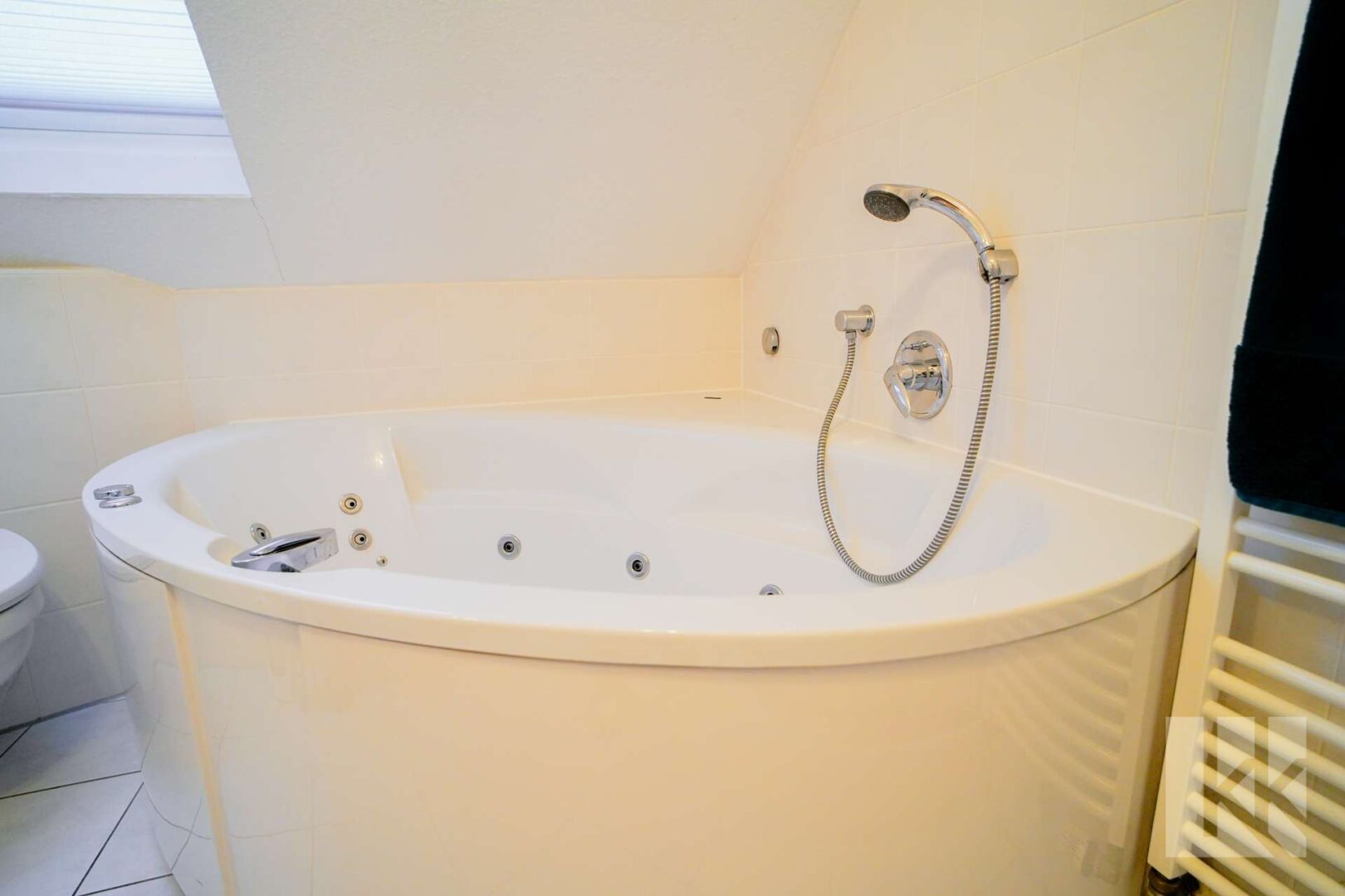 Im Obergeschoss befinden sich die privaten Rückzugsorte der Familie. Die vier geräumigen Schlafzimmer bieten jedem Familienmitglied sein eigenes, gemütliches Reich. Ein großzügiges Badezimmer mit Whirlpoolbadewanne und separater Dusche sorgt hier für luxuriösen Komfort. Ein zusätzlicher Abstellraum, der auch als Homeoffice genutzt werden kann, rundet diese Ebene ab.
