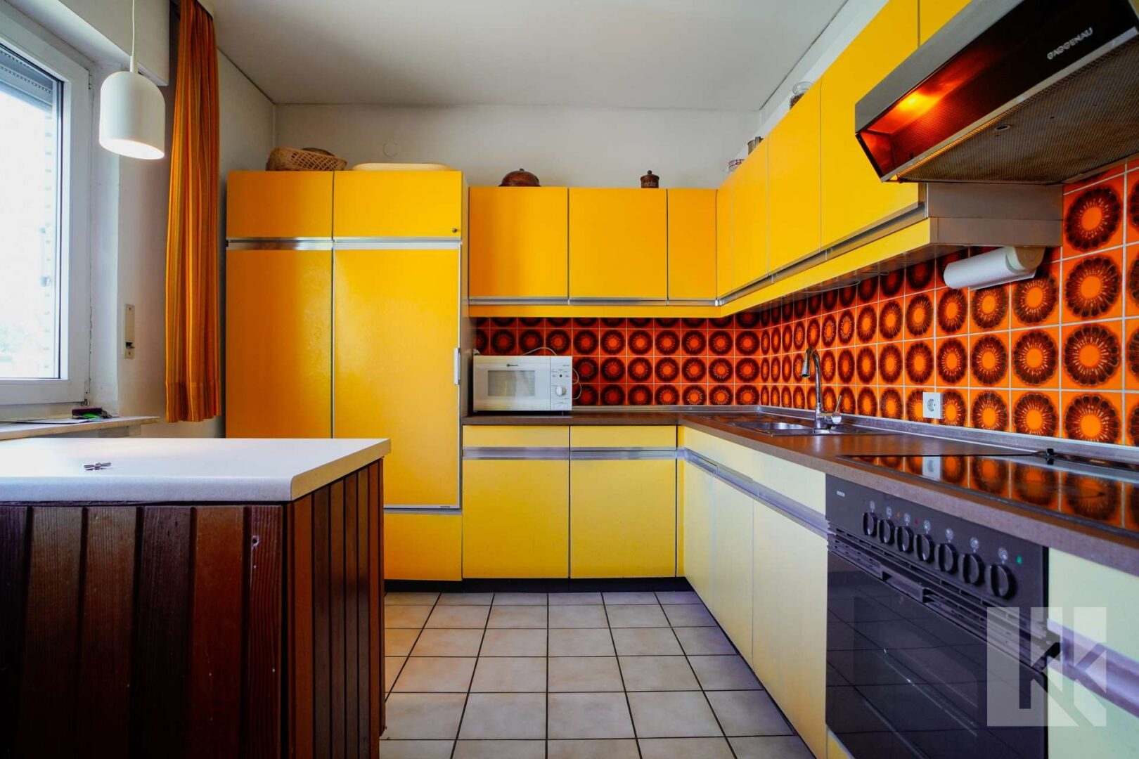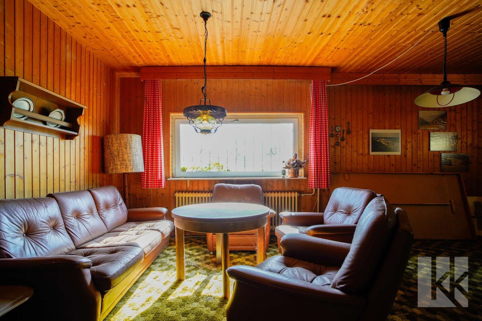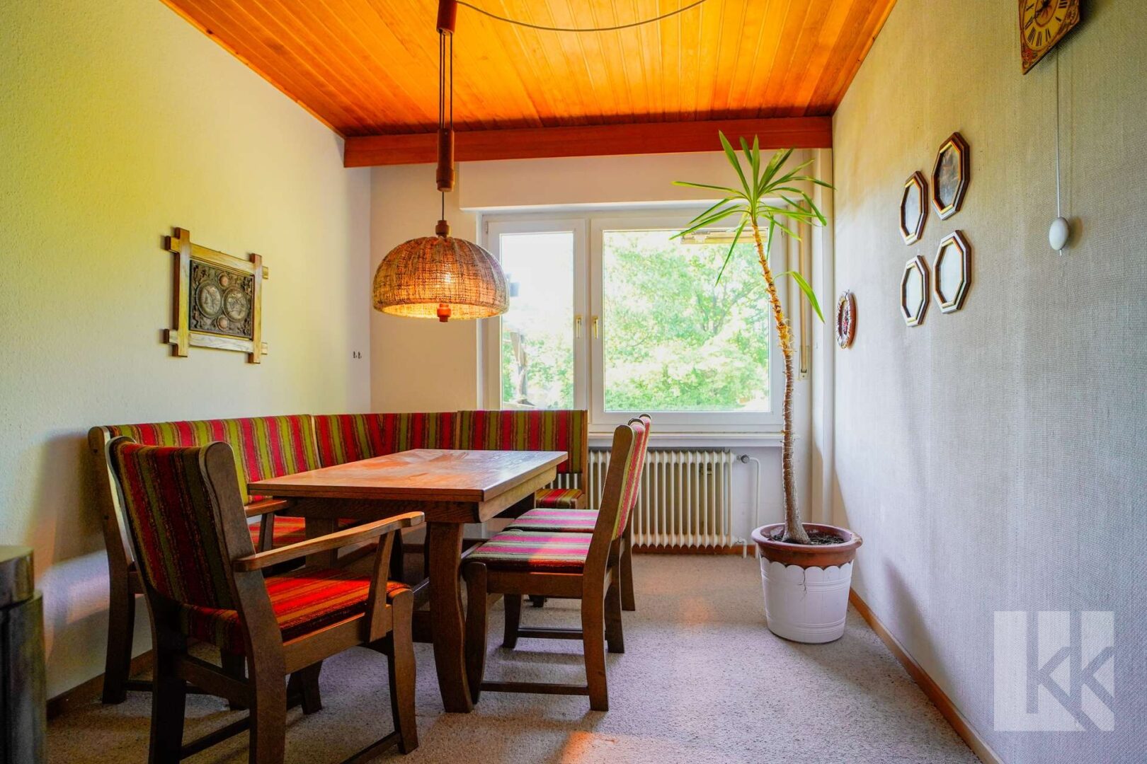 Schon beim Betreten des Hauses empfängt Sie ein kleiner Windfang mit Gäste-WC – praktisch und einladend. Dahinter öffnet sich eine geräumige Küche mit nostalgisch anmutender Einbauküche, die echten Retro-Charme versprüht. Der anschließende Wohnbereich mit Zugang zur Terrasse bildet das Herzstück des Hauses: Hell, gemütlich und mit Blick in den großzügigen Garten, der zu entspannten Stunden im Freien einlädt.