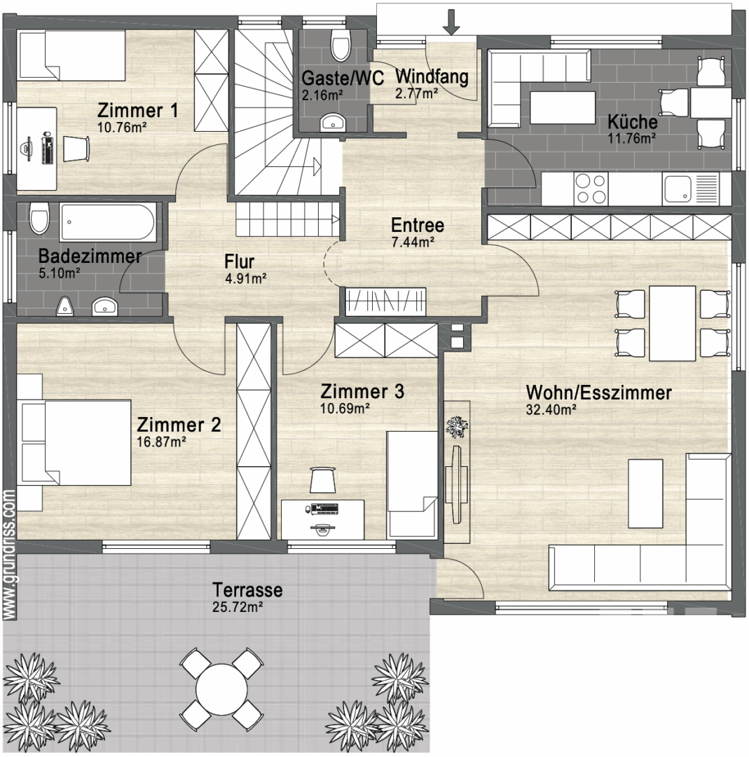 Eine Garage sowie ein oder zwei Stellplätze auf dem Hof runden das Angebot ab.