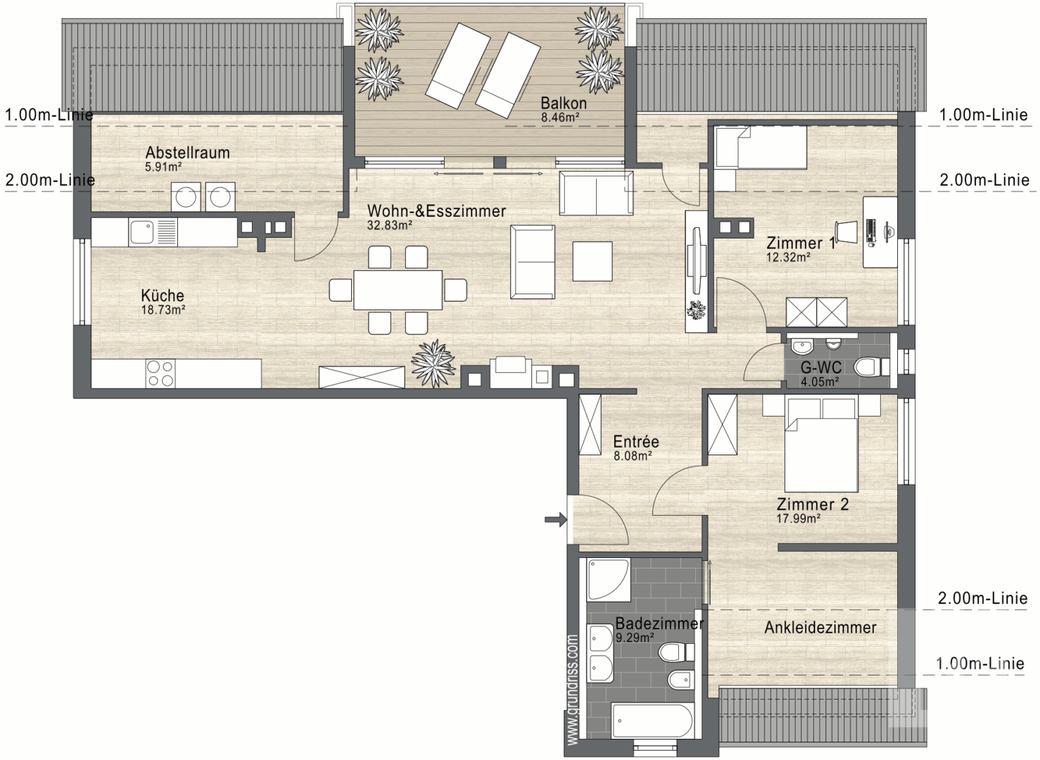 • 2 Schlafzimmer, 1 Ankleide