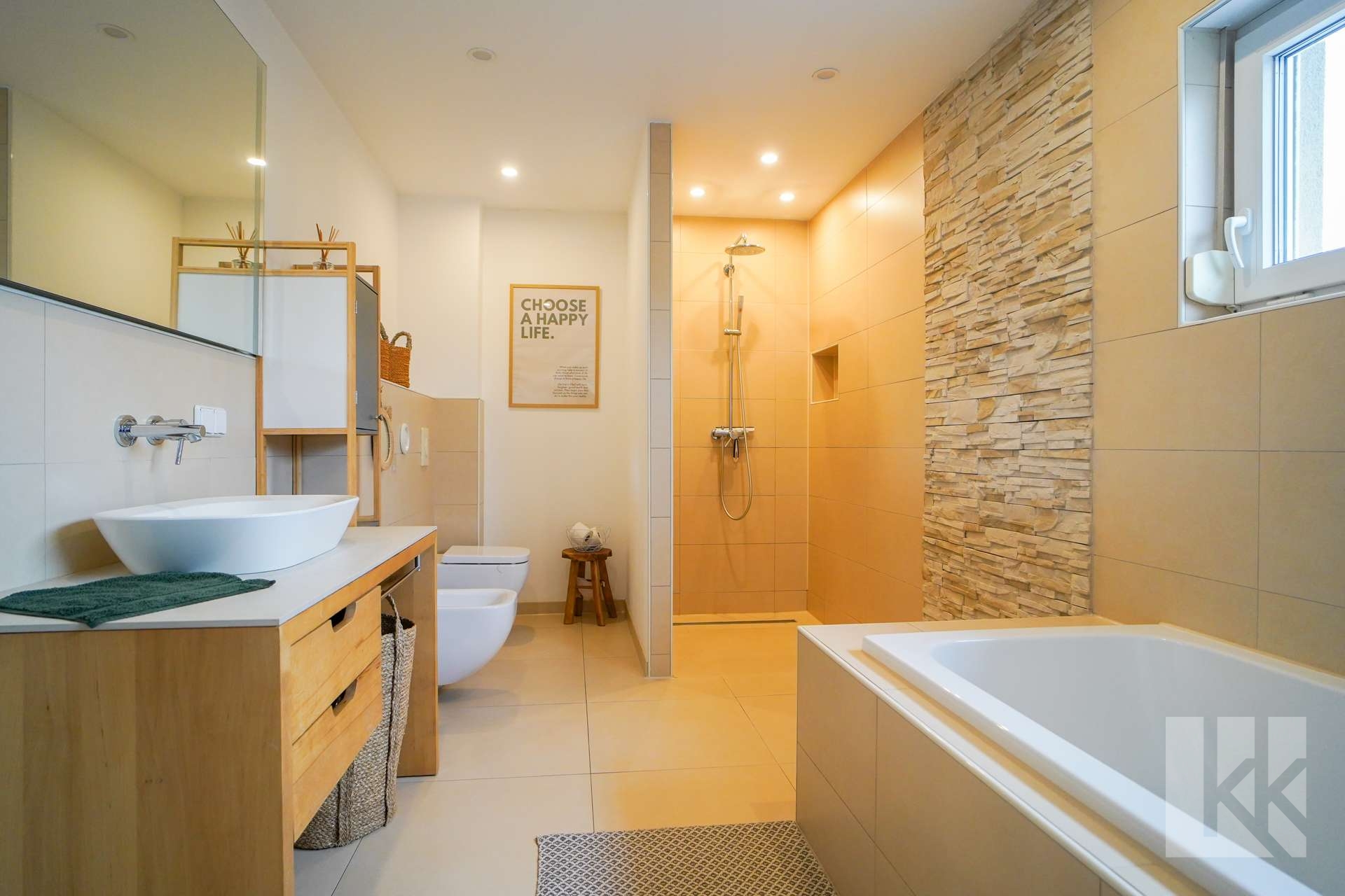 • Badezimmer mit Dusche und Badewanne