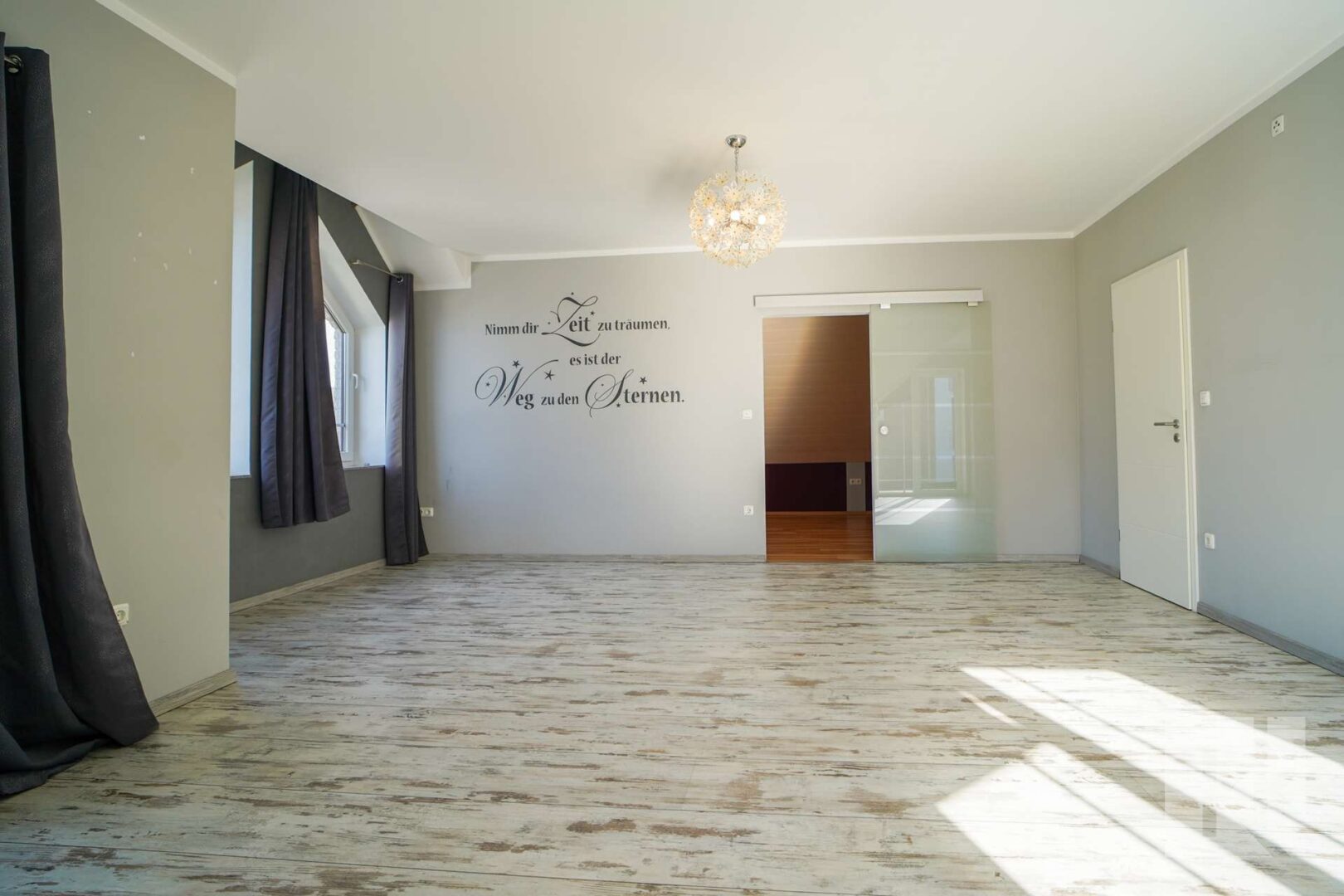 Über eine Holztreppe gelangen Sie ins Obergeschoss. Eine Galerie und ein zentraler Flur verbinden die Räume dieser Ebene. Zwei gut geschnittene Schlafzimmer sowie ein weiteres flexibel nutzbares Zimmer bieten Raum für Kinder, Gäste oder ein Homeoffice. Das Elternschlafzimmer wird durch einen separaten Ankleidebereich ergänzt. Ein weiteres Tageslichtbad mit Dusche und Badewanne komplettiert das Raumangebot.