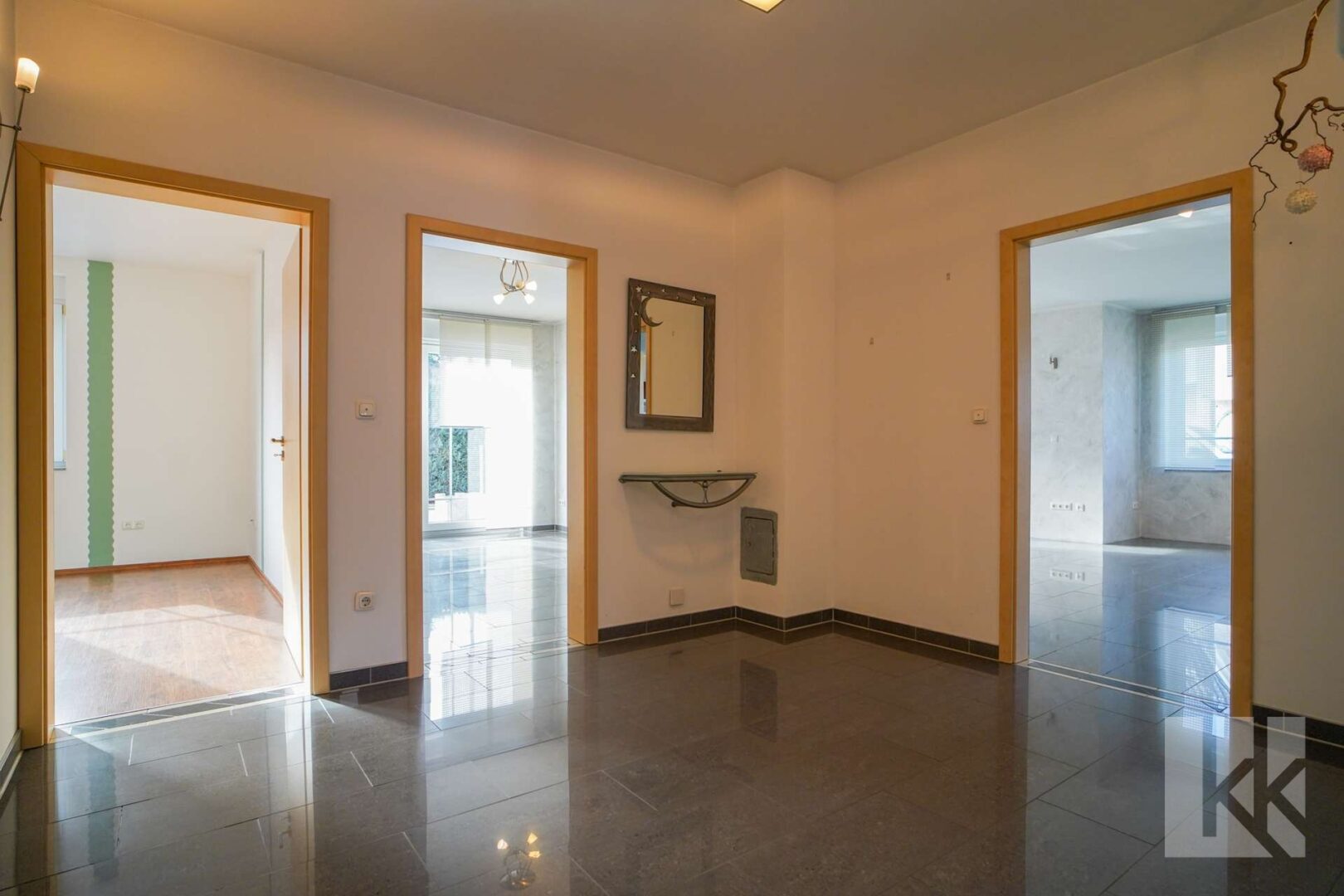 Auf 216 m² Wohnfläche entfaltet sich ein durchdachtes Raumkonzept, das Offenheit und Rückzug sinnvoll verbindet. Bereits beim Eintreten vermittelt der großzügige Eingangsbereich ein angenehmes Raumgefühl. Gäste-WC und Garderobenfläche sind praktisch integriert, der zentrale Flur erschließt die Räume des Erdgeschosses auf kurzen Wegen.