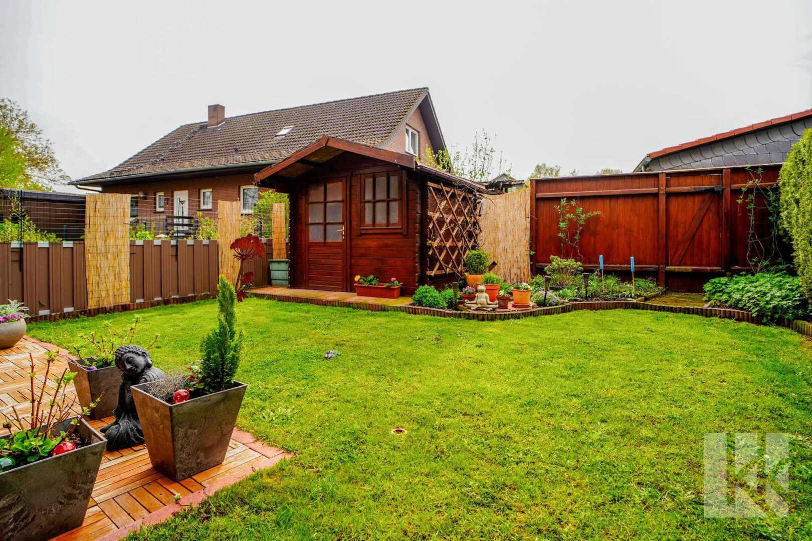 Zwei Zimmer bieten vielseitige Nutzungsmöglichkeiten als Schlafzimmer, Kinderzimmer, Gästezimmer oder Arbeitsbereich, während der großzügige Wohnbereich durch seine direkte Anbindung an die überdachte Terrasse besticht. Der angrenzende, komplett eingefriedete Garten ist großzügig angelegt und lädt dazu ein, den Alltag inmitten von Grün zu entschleunigen.
