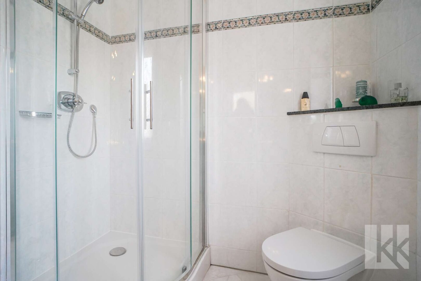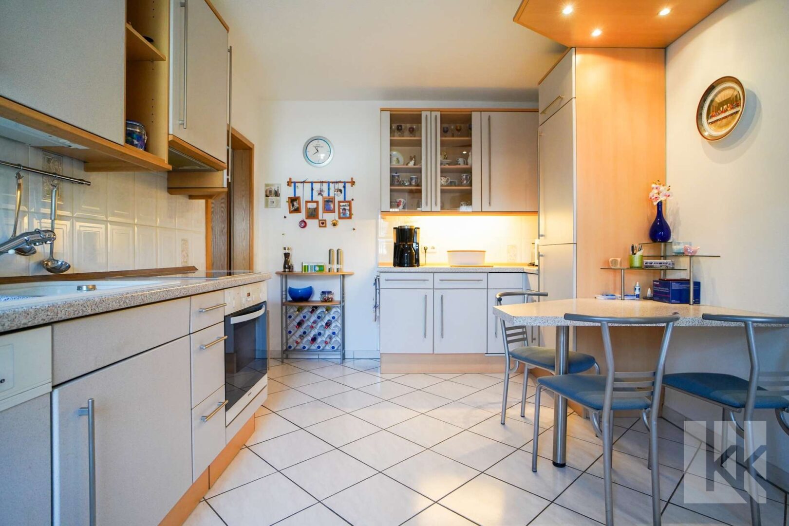 Bereits beim Betreten des Hauses wird die klare Struktur spürbar. Der Eingangsbereich bietet Platz für eine Garderobe und führt direkt in das modern gestaltete Tageslichtbad mit Dusche – praktisch im Alltag oder für Gäste. Gegenüber befindet sich die Küche, die durch den angrenzenden Hauswirtschaftsraum sinnvoll ergänzt wird. Von hier aus besteht ein direkter Zugang zur integrierten Garage sowie zu einem zusätzlichen Abstellraum – kurze Wege, durchdacht geplant. Der gesamte Flur ist mit hochwertigem Marmorino Putz verputzt.
