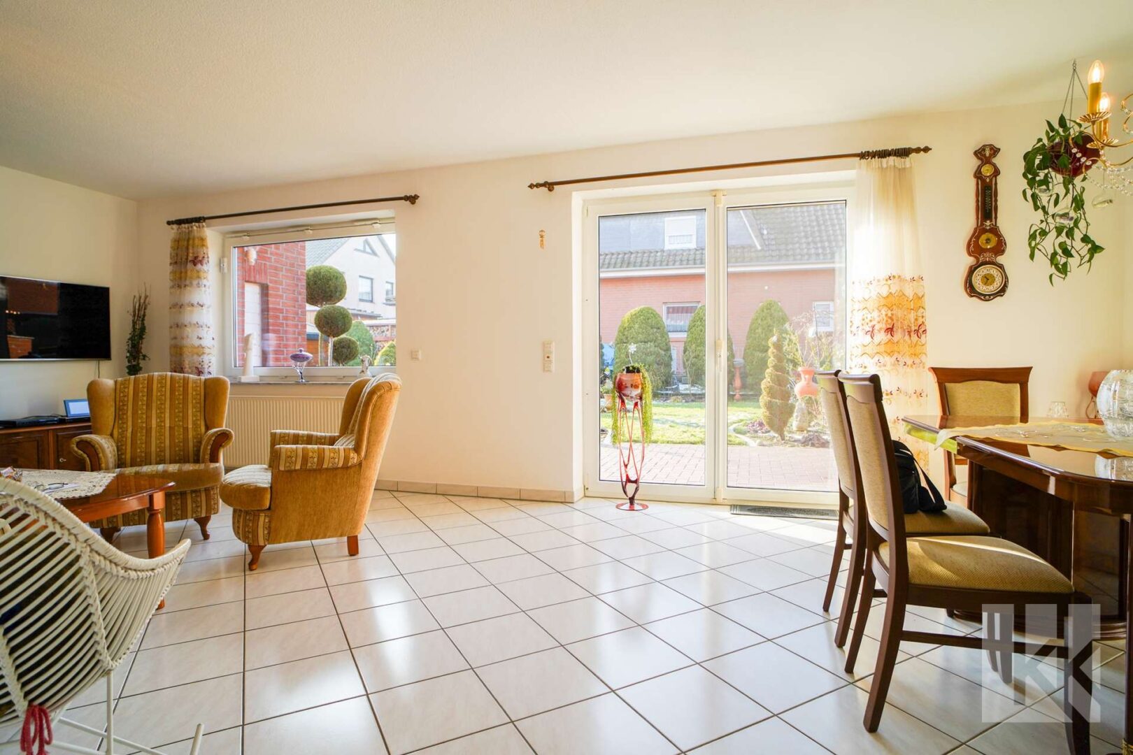 Der Garten ist gepflegt und sichtgeschützt angelegt. Die Terrasse erweitert den Wohnbereich ins Freie und bietet einen wunderschönen Platz für entspannte Stunden.
