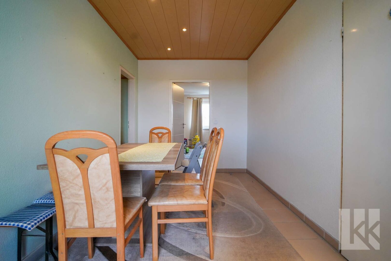 Ein kleiner Flur verbindet die privaten Räume: das Badezimmer, ein separates WC, einen praktischen Abstellraum sowie drei weitere Zimmer, die individuell als Schlafzimmer, Kinderzimmer, Homeoffice oder Gästezimmer genutzt werden können.