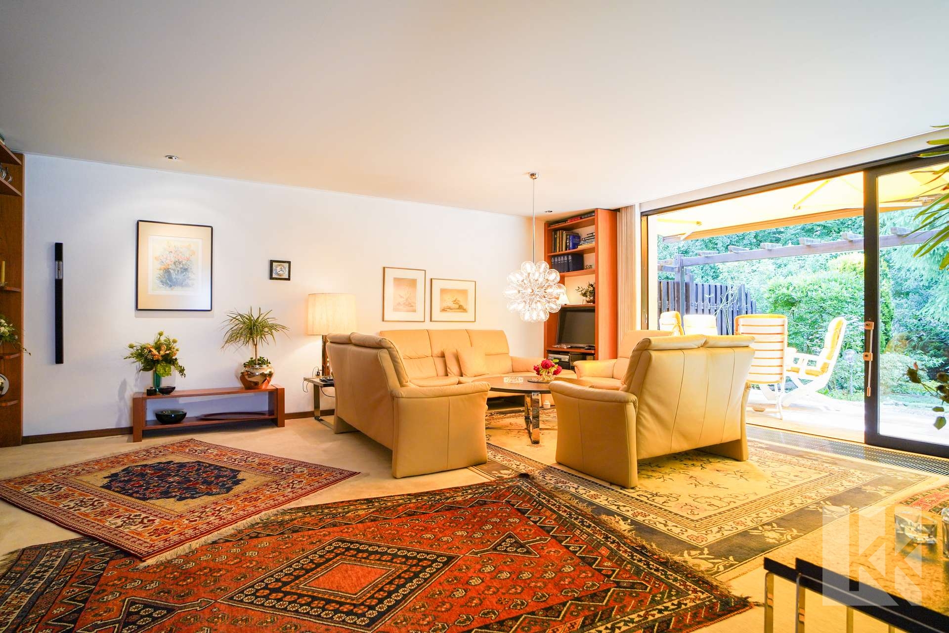 Schon beim Betreten empfängt Sie der offen gestaltete Eingangsbereich mit Garderobe – einladend und großzügig. Direkt anschließend öffnet sich der lichtdurchflutete Wohn- und Essbereich, der dank des Anbaus besonders weitläufig wirkt. Große Fensterflächen geben den Blick frei auf den farbenfrohen Garten und lassen den Raum fast mit der umliegenden Natur verschmelzen. Hier scheint die Hektik des Alltags in weiter Ferne.