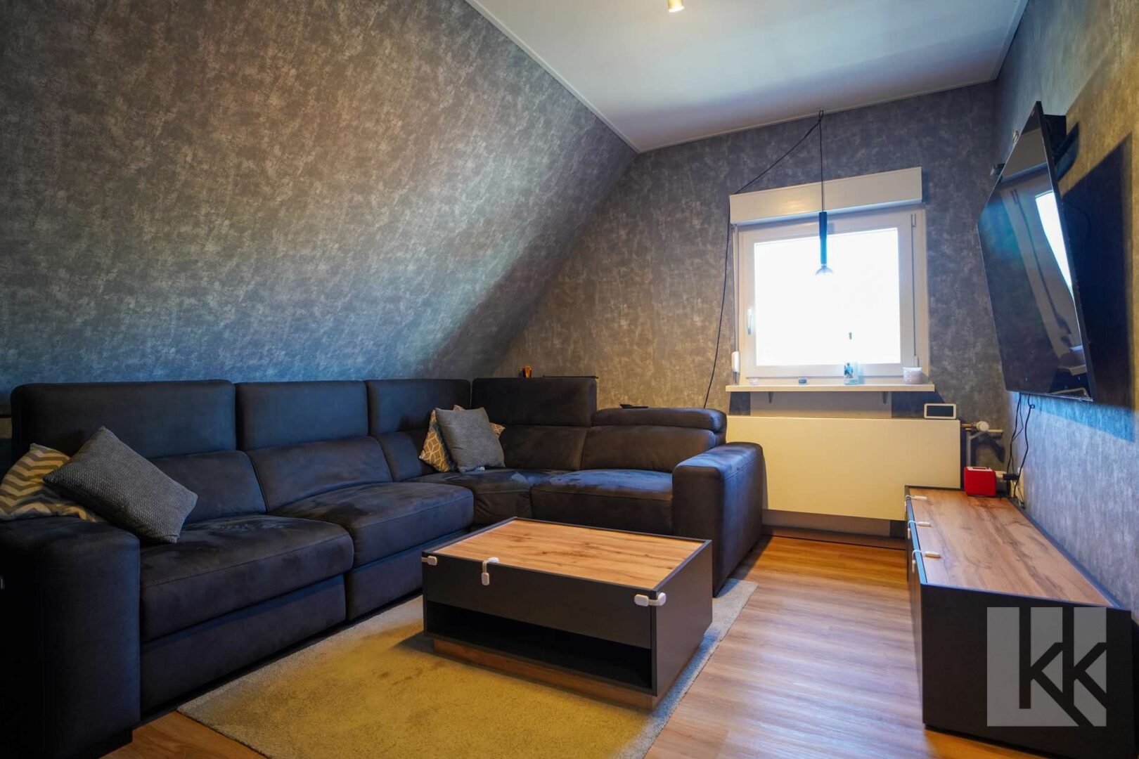 Über eine Holztreppe gelangen Sie in das Obergeschoss, das mit seinem durchdachten Grundriss überzeugt. Dort erwarten Sie zwei einladende Schlafzimmer, eine moderne Küche sowie ein großzügiges Wohnzimmer, das ein angenehmes Wohnambiente schafft.