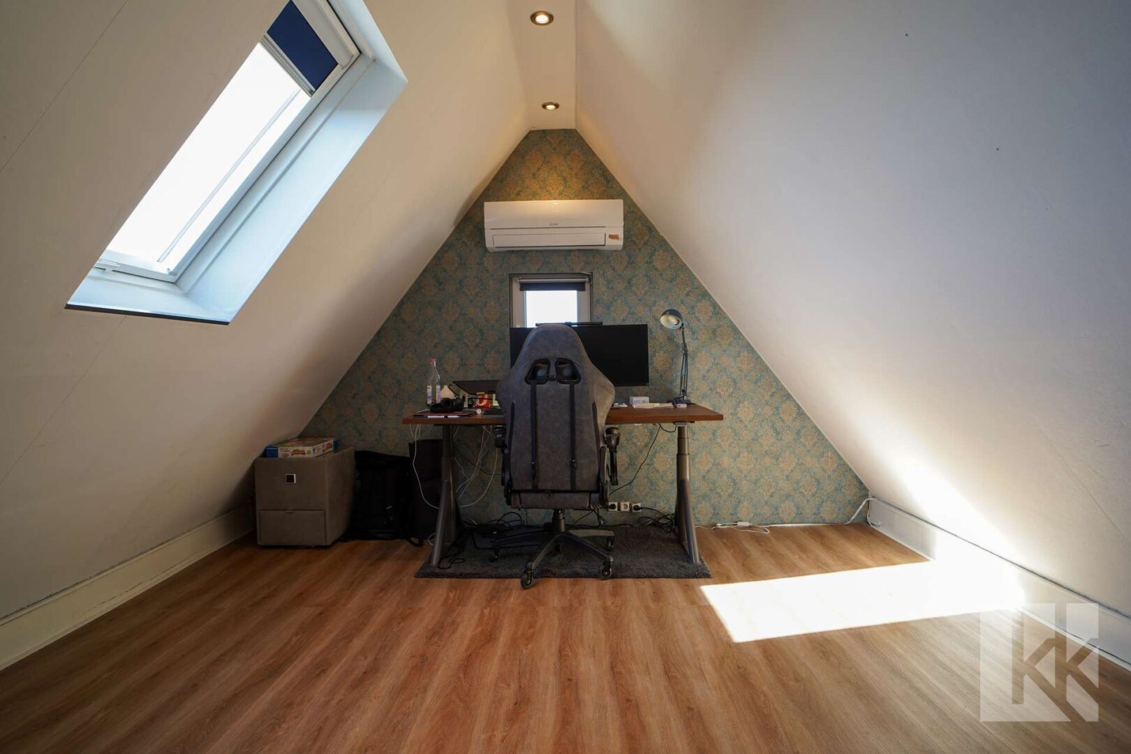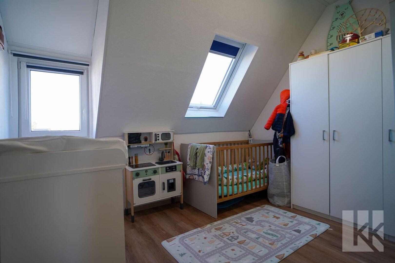 Im ausgebauten Dachgeschoss, welches ebenfalls über die Holztreppe erreicht wird, erwartet Sie ein geräumiges Ankleidezimmer und mit weiterem Platz für einen zusätzlichen Homeoffice-Bereich.