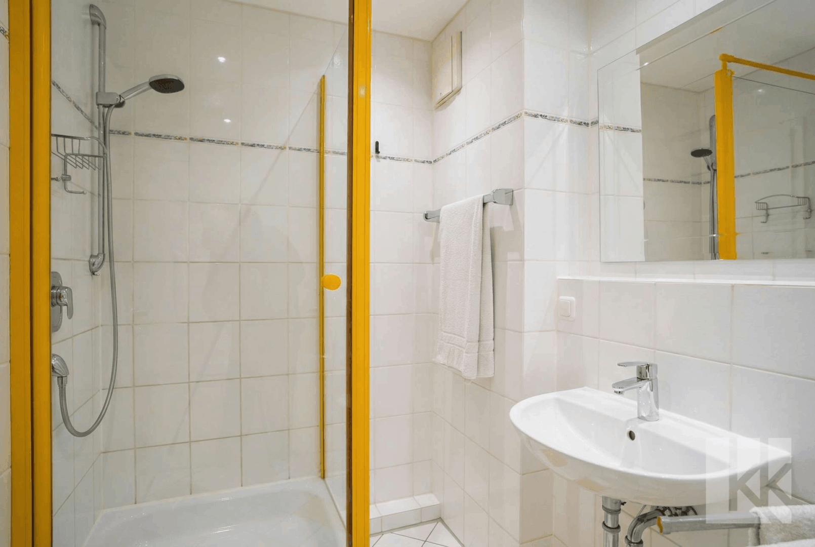 Das Badezimmer ist zeitlos gestaltet und mit Dusche sowie Badewanne ausgestattet. Ein weiteres separates Zimmer liegt ruhig am Ende des Flurs und bietet ausreichend Platz für einen komfortablen Rückzugsort.