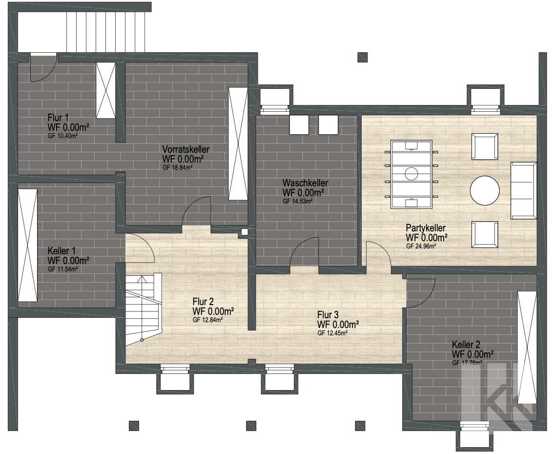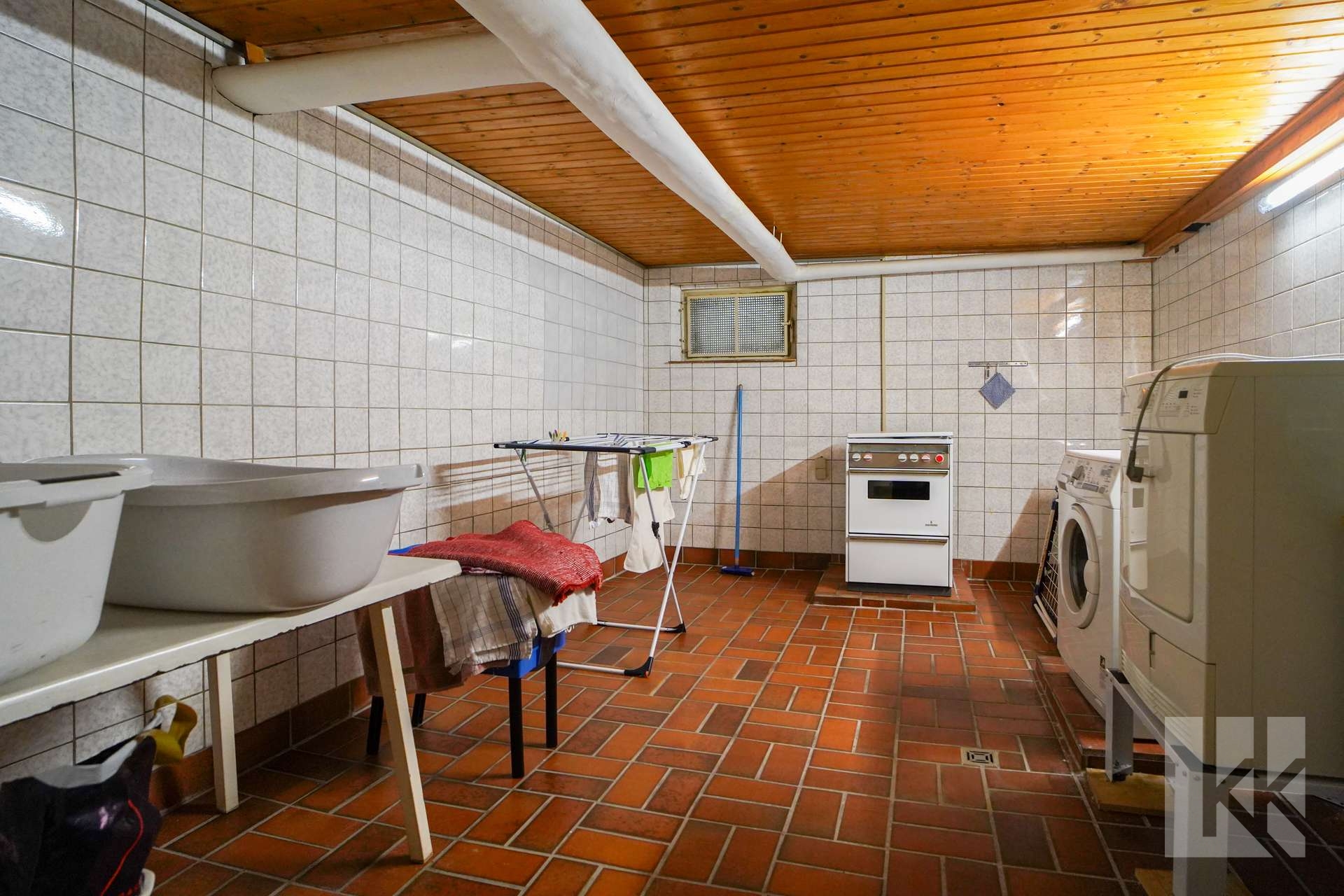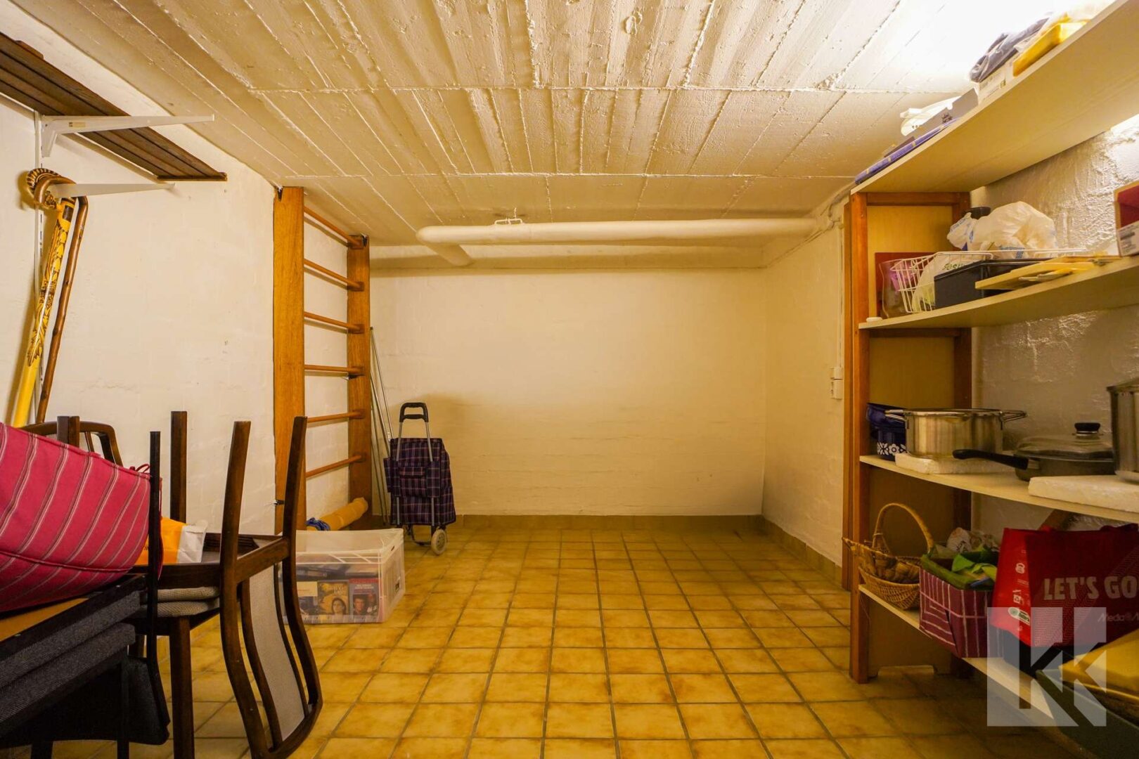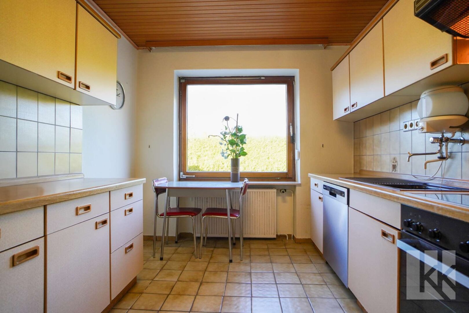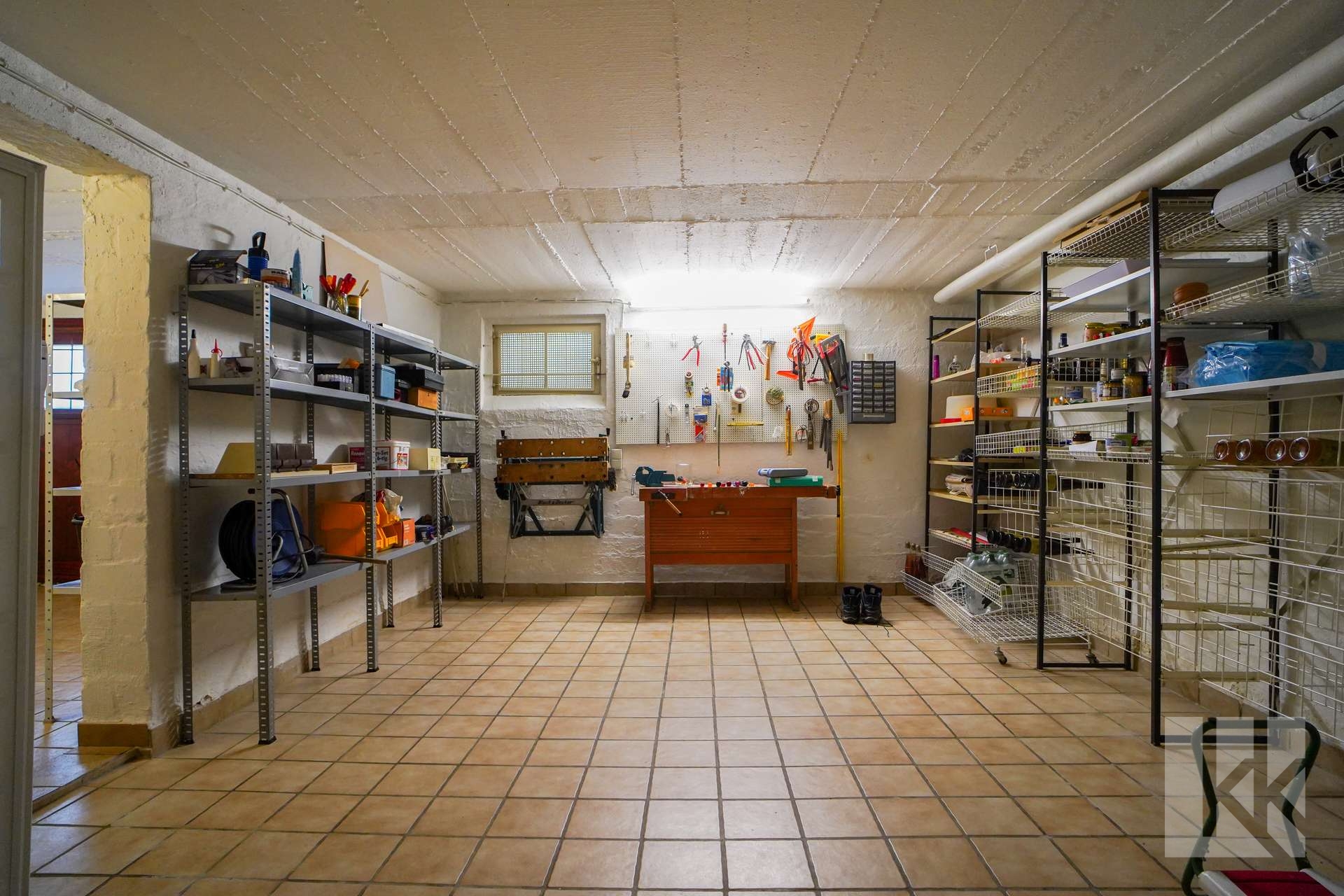 Auf der anderen Seite des Foyers liegt die abgeschlossene Küche. Von hier gelangen Sie direkt in den großzügigen Keller – ein echtes Highlight für alle, die viel Stauraum oder Platz für Hobbys, Handwerk oder Partys benötigen. Auch die Garage erreichen Sie bequem über die Küche.